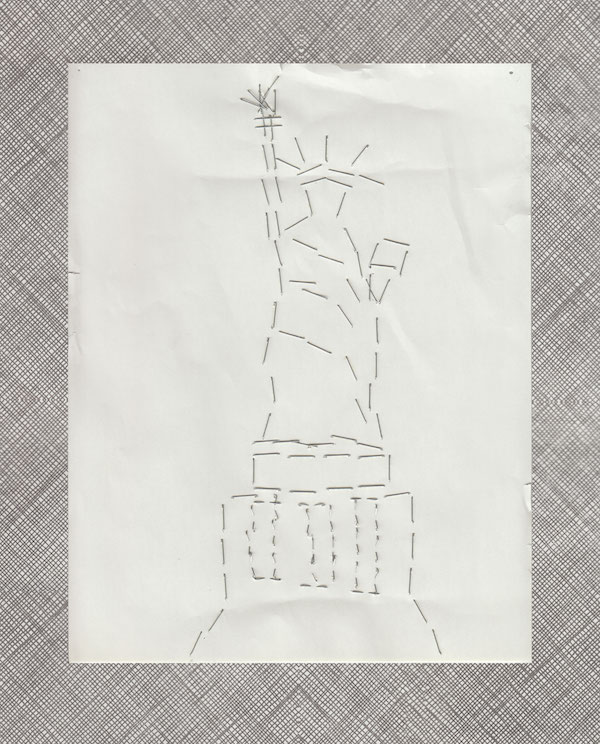 homeland security, 2019 staples on paper, xerox print, 11" x 14"